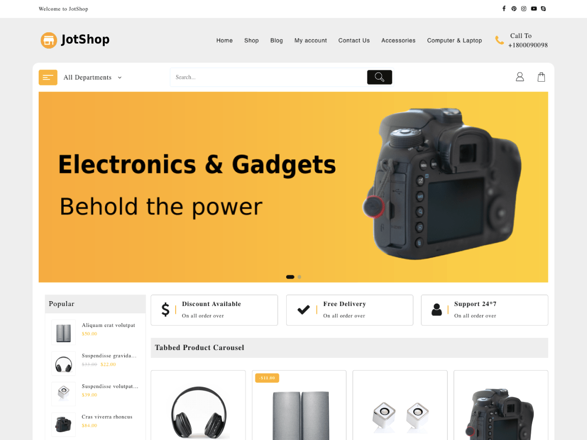 Th-Jot is a beautiful and clean child theme of Jot Shop and Jot Shop pro. You can create websites like gadget & digital store, fashion shop, furniture, electronic, food, grocery, clothing etc. It has many sections along with Header and footer layout combinations, Color and Background option and other customizing options. Theme is deeply integrated with WooCommerce plugin to sell your products online.