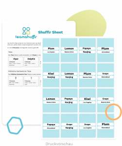 Nachdem du deine Teams konfiguriert hast, erstellt teamshufflr für alle Personen individuelle Mermal-Karten, welche du ganz einfach ausdrucken kannst.