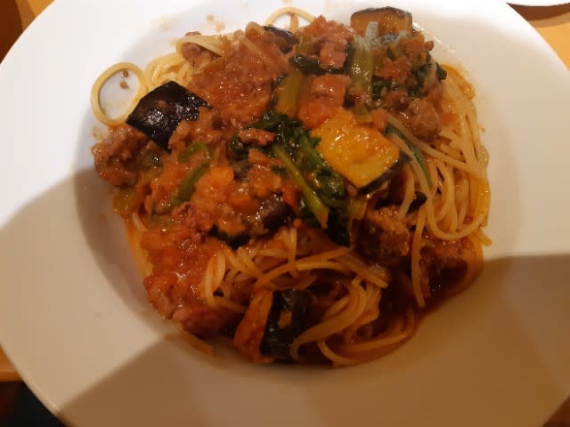 パスタも量が多目だから息子にふたり分を分けても大丈夫~