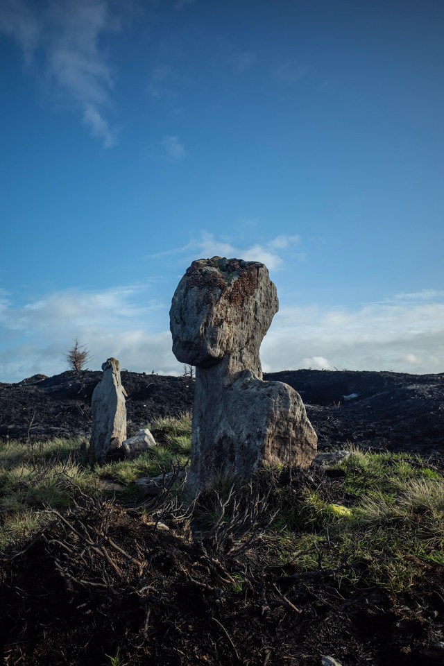I was relieved to see that the standing stones on the western margin of the boundary were left unharmed by the fire. The large stone is known as the Old Wife’s Neck and is a particular favourite of mine.