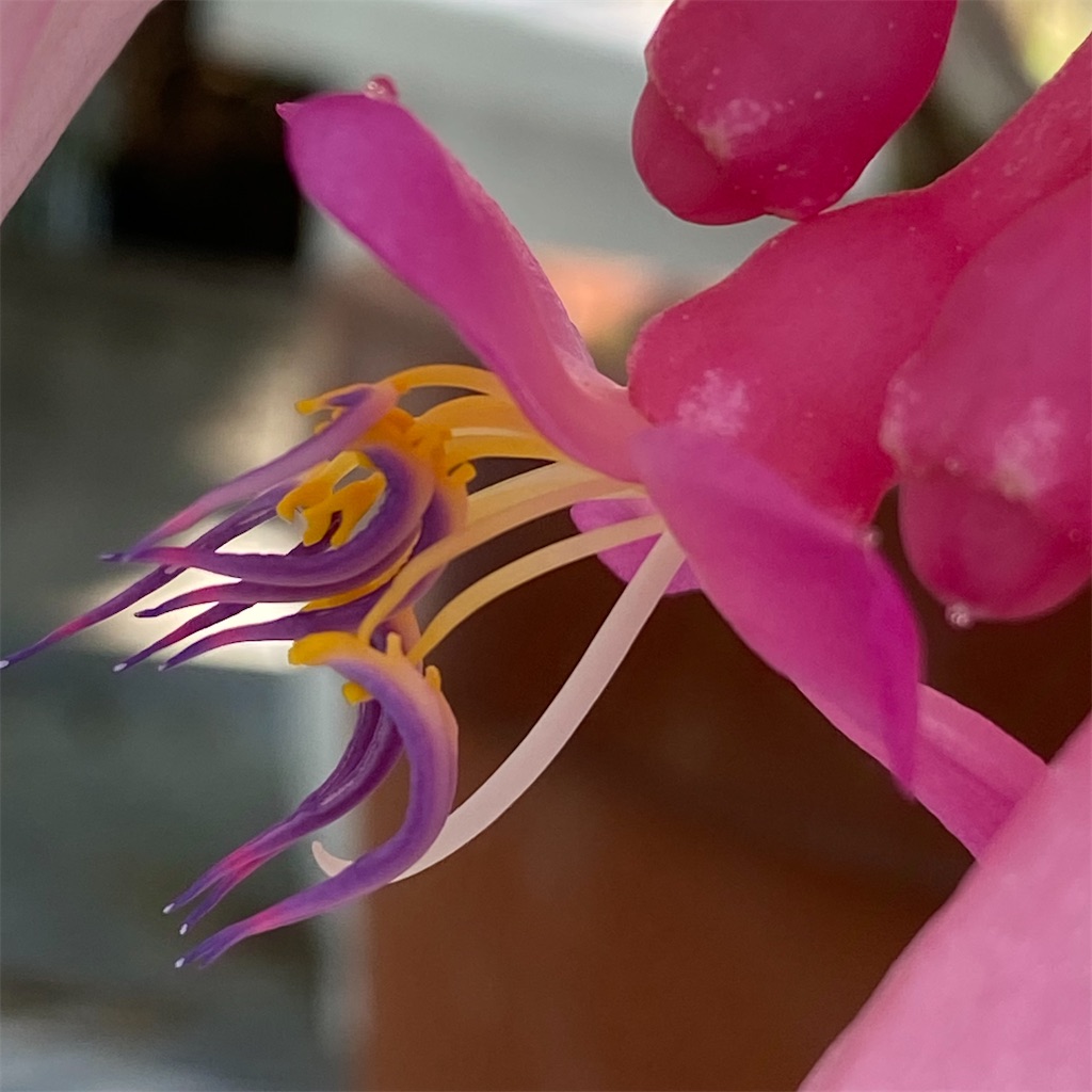お花の顔を見てみたくてスマホを下から差し込んでみました。