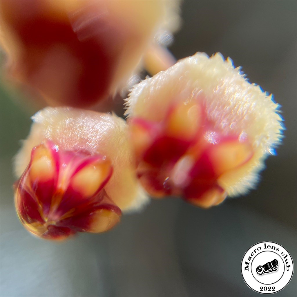 蕾に雫がついていたので100均のマクロレンズで撮ってみましたよ。
