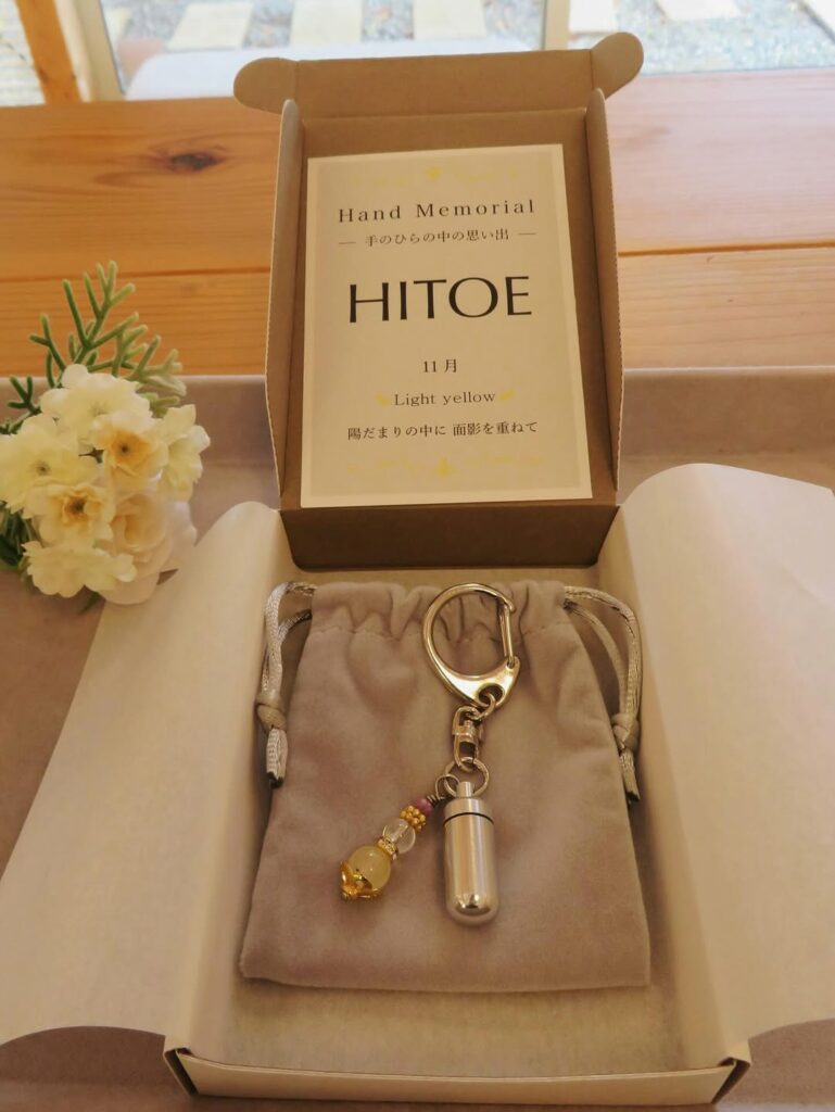 本日は、当店オリジナル商品の遺骨カプセル「ハンドメモリアル HITOE(ひとえ)」のご案内です。
