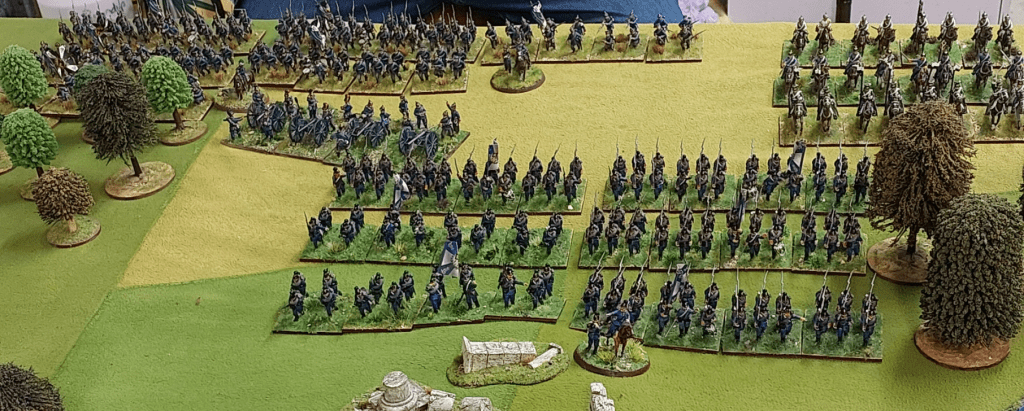 Cavalry on flanks doing what cavalry on flanks do…..sorting out who is the best.