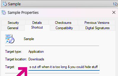 Earlier this year, a security vulnerability report was filed complaining that Windows File Explorer would not show the full target of a .lnk file if the target was longer than 260 characters.
