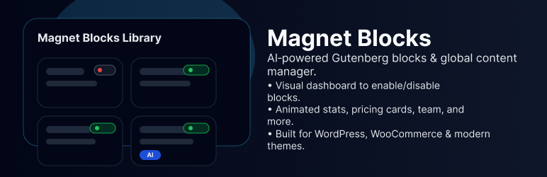 Magnet Blocks is a comprehensive collection of premium Gutenberg blocks designed to help you create professional, modern websites without any coding knowledge. Whether you’re building a business website, portfolio, or online store, Magnet Blocks provides the essential building blocks to bring your vision to life.