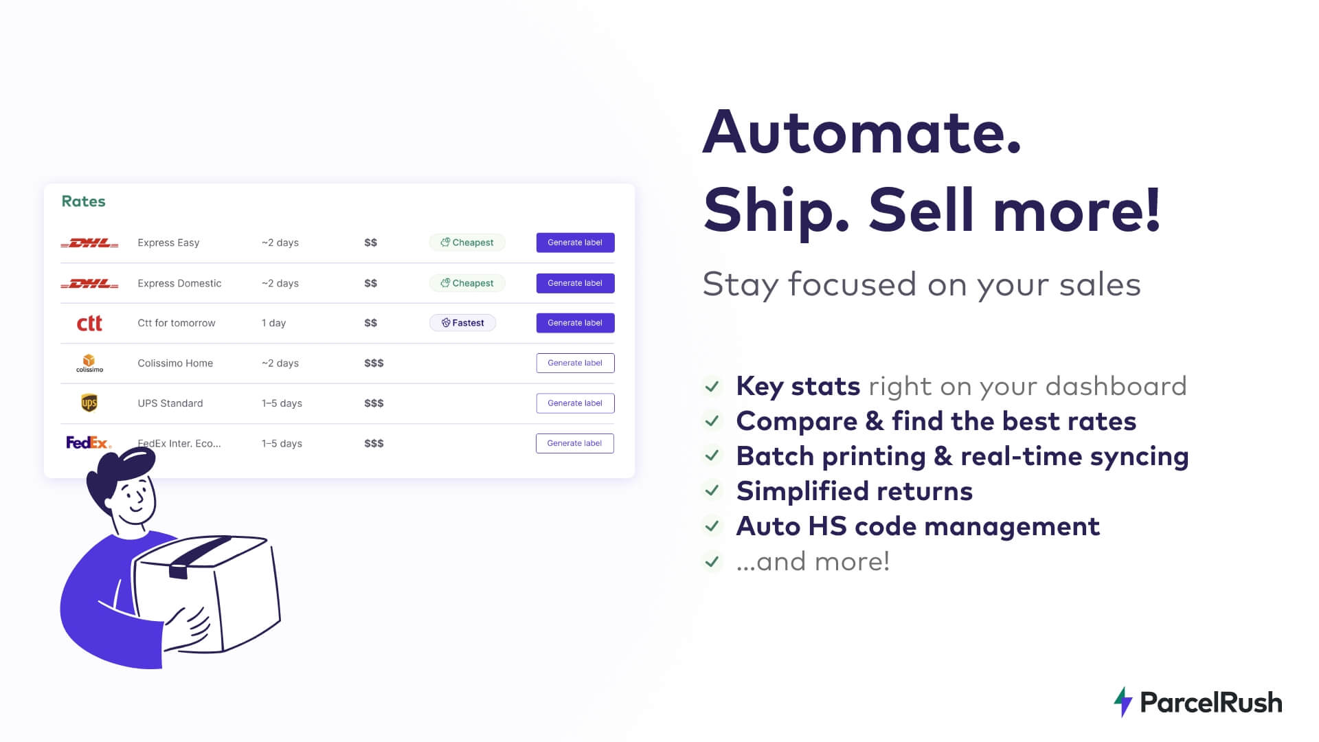 - Simple one-click connection to ParcelRush platform