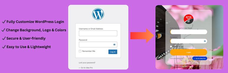 Fully customize the default WordPress login page with easy-to-use options.