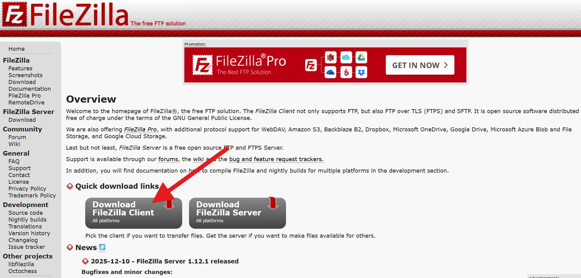 เข้าเว็บไซต์ทางการของ FileZilla คลิกที่นี่ เลือกเวอร์ชัน FileZilla Client