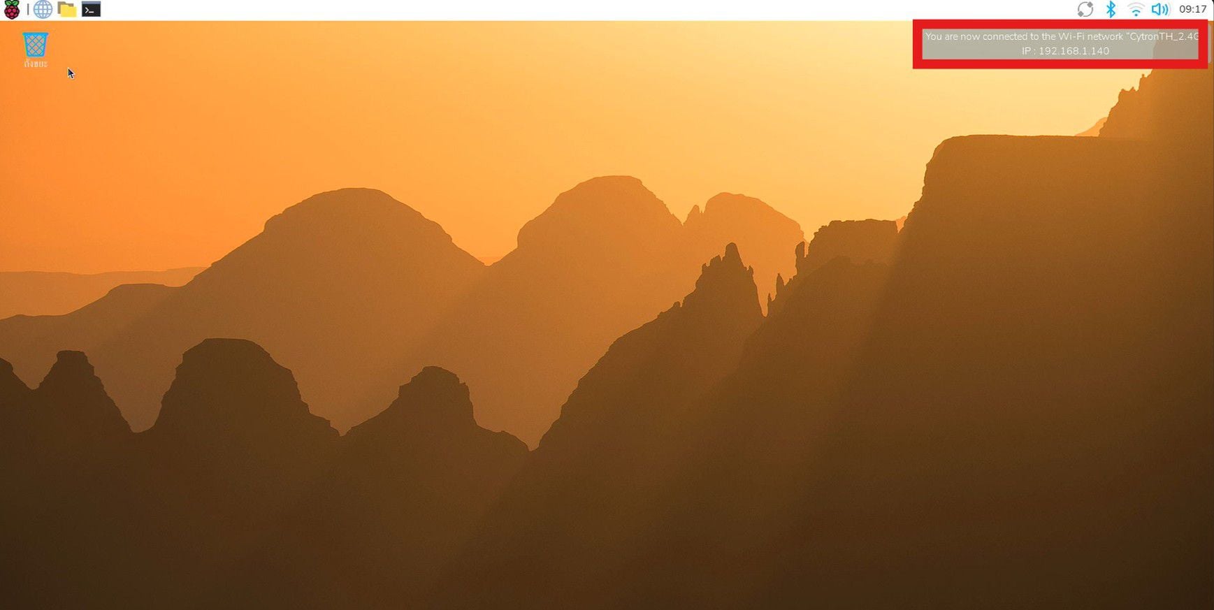 บน Raspberry Pi เปิด Terminal แล้วพิมพ์ จะได้ IP