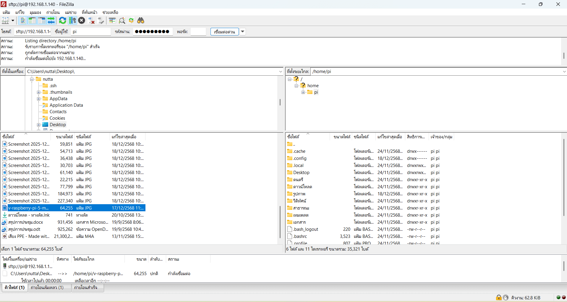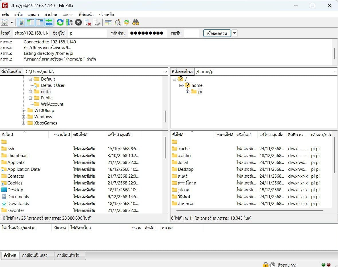 - ฝั่งขวา = ไฟล์ใน Raspberry Pi