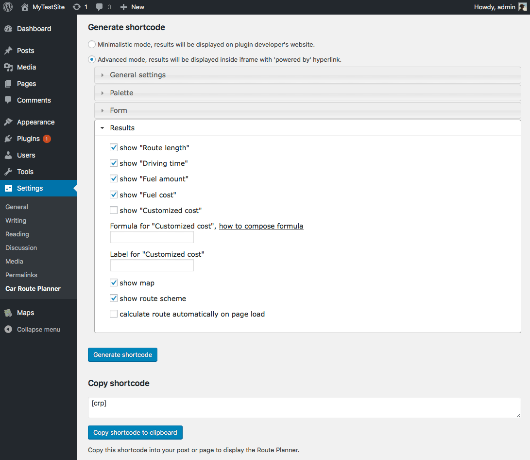 3. Insert “car route planner” block in Gutenberg editor or use shortcode