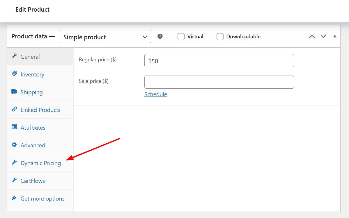 - Go to the “Dynamic Pricing” tab in the product data section.