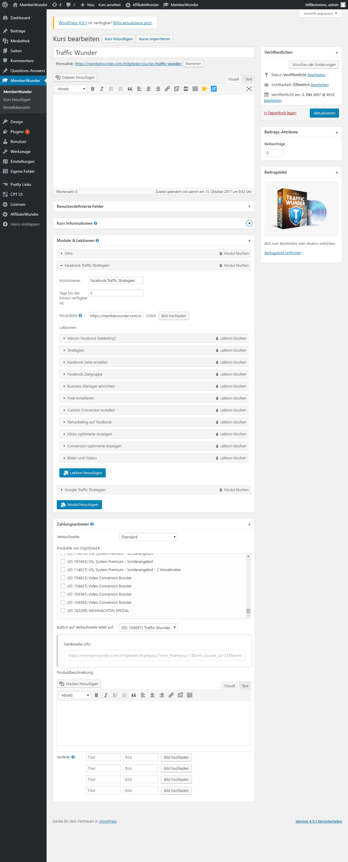MemberWunder LMS Pro erlaubt es Ihnen Ihre Kurse mit Zahlungsanbietern wie Digistore24 zu verknüpfen.