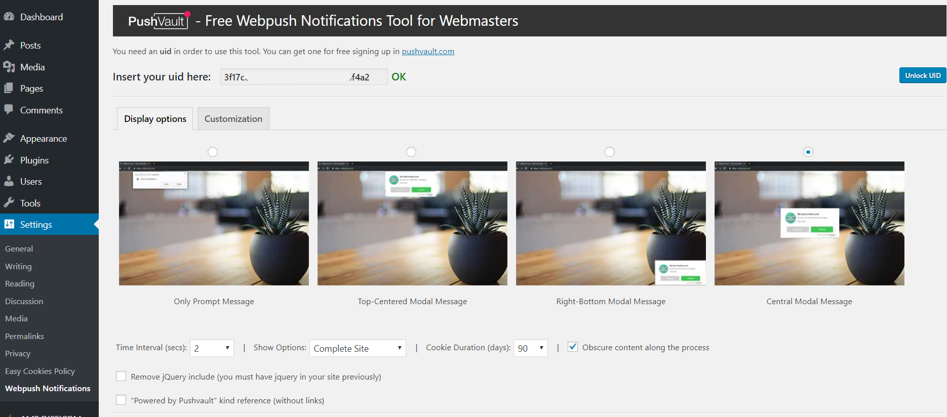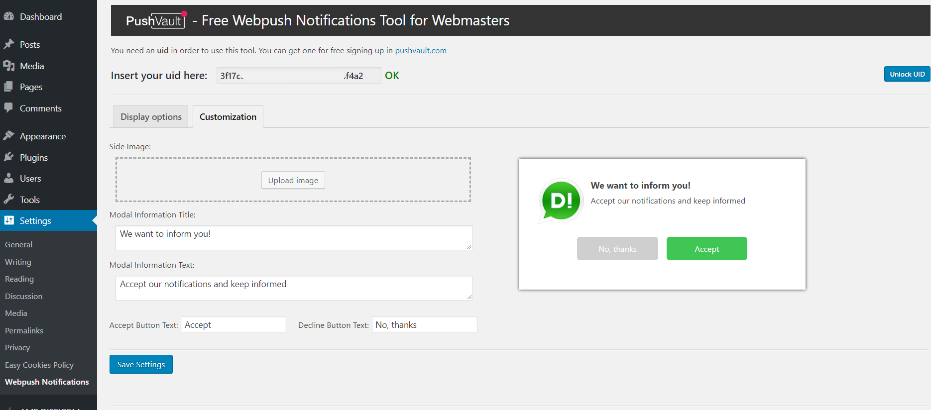 Plugin – Add your Pushvault UID