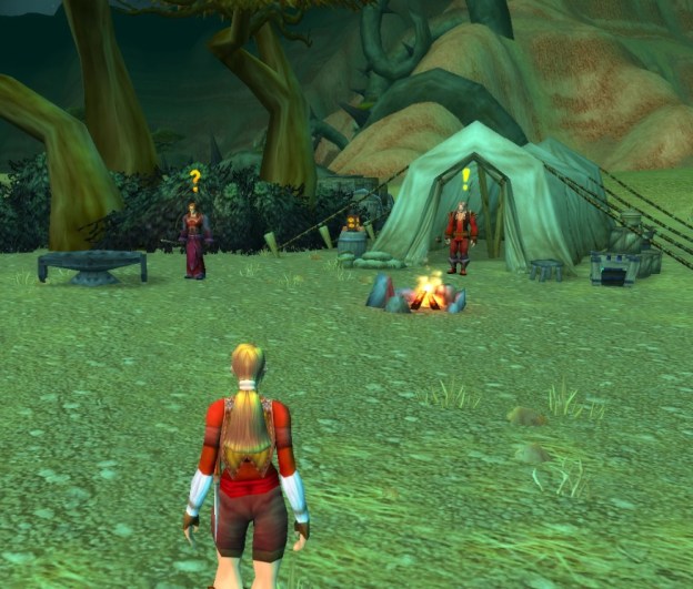 The camp isn’t near the road enough so you see the tents or the gold dot for the quest turn in as you run by. If you’re in Ratchet, you’ve gone too far! (I did not get that far before I turned around.)