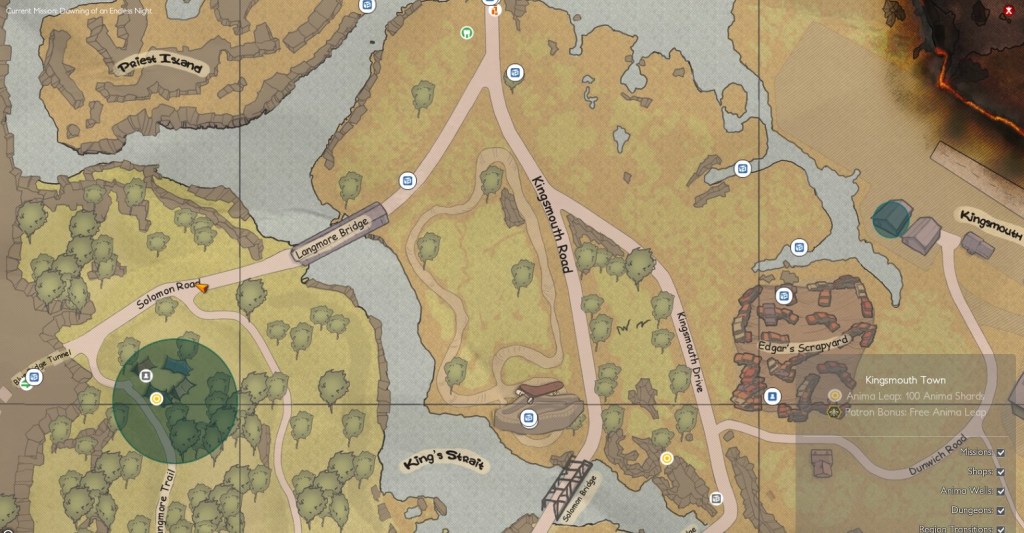 It turns out my character is still in Kingsmouth. She was level 14, and was still back at the dread tunnels.