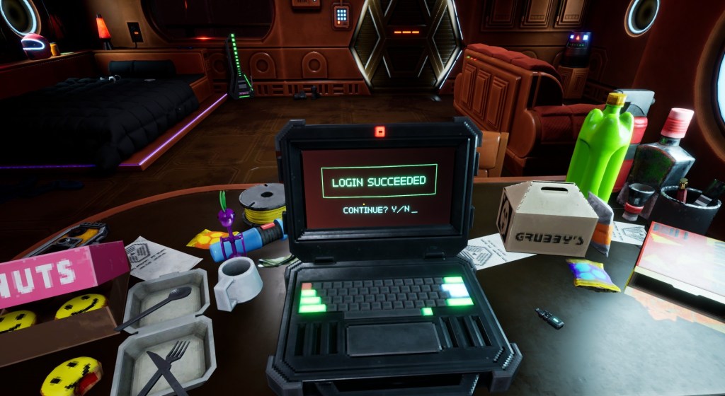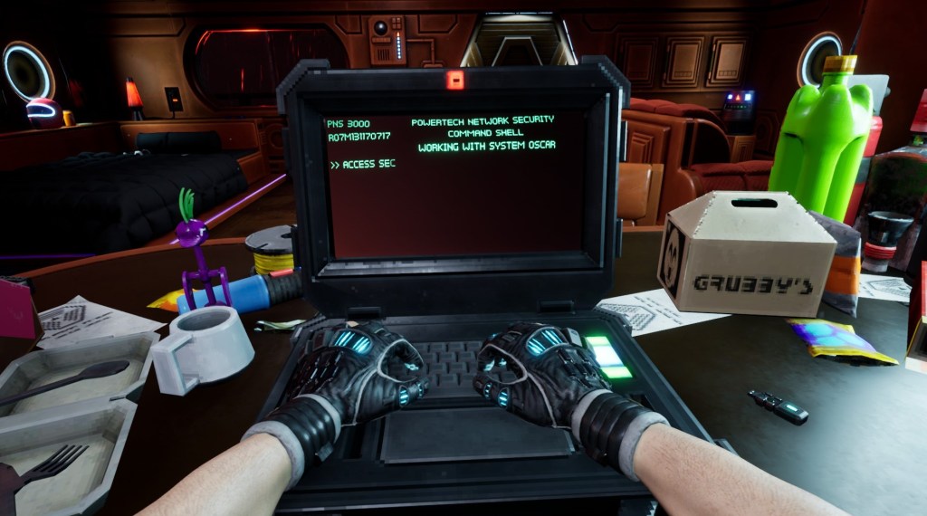 So you’re a hacker trying to get access to some body mod upgrades. In a cozy apartment (usually future living spaces seem barren) you flex your fingers and log onto a computer.
