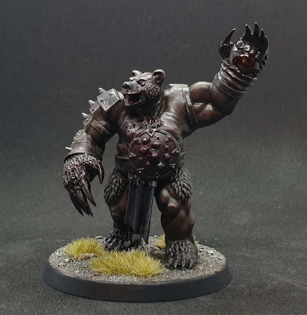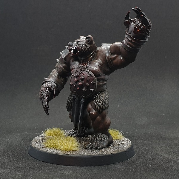 Native to the northern reaches of the Grunvale and beyond, the Ursek has a particularly fearsome reputation. The Ursek are often found roaming mountain passes and the darkest parts of ancient forests in relative solitude, only gathering in numbers when the need arises. These creatures are a mass of muscle and dense layers of body fat, which combined with their unnaturally rugged hide, affords them a great deal of resilience to to the average blade and spear. To stumble across the site of an Ursek attack is a sight of pure horror. Corpses torn apart, rib cages crushed and opened up like potted meat, limbs and innards strewn around while smashed and gnawed heads sit atop twisted necks. Little can stop one of these creatures when they attack, and nigh on impossible to stop if they are enraged.
