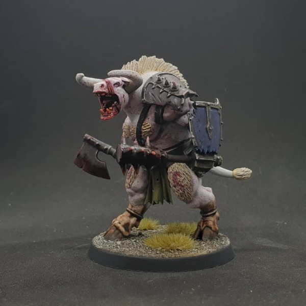 The earliest reference to an albino example of Bestia Bovigor Superior was noted amongst the villages and towns on the alpine borders shared by the Free Shires and the Vesentaal League. A lone creature stalking amongst the forests and valleys, attacking caravans and travellers across the region. Always alone, never with any other beastmen at his side. However these tales suddenly stopped and those travelling the roads of the region breathed a sigh of relief.