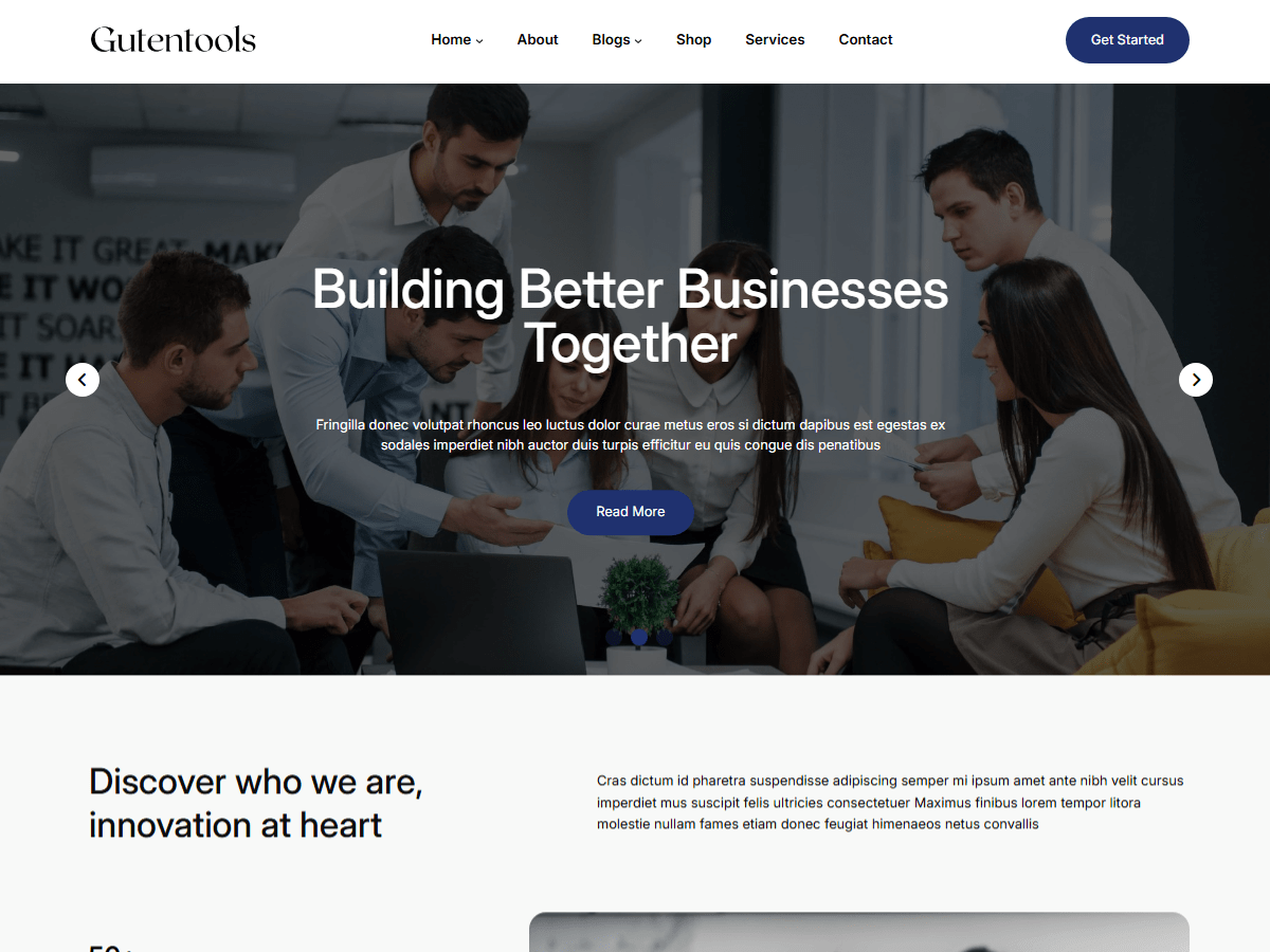 Welcome to Gutentools, where innovation meets sophistication in the digital world. Powered by advanced WordPress Full Site Editing (FSE), our platform provides a seamless and efficient solution for businesses everywhere. Featuring a sleek, intuitive interface and modern design, Gutentools simplifies access to essential tools and services tailored to your unique needs. Discover a wide range of solutions crafted to elevate your business—from time-tested strategies to cutting-edge innovations. At Gutentools, we blend premium resources with personalized experiences to help you achieve your professional goals with ease and confidence. Let us empower your journey to success.