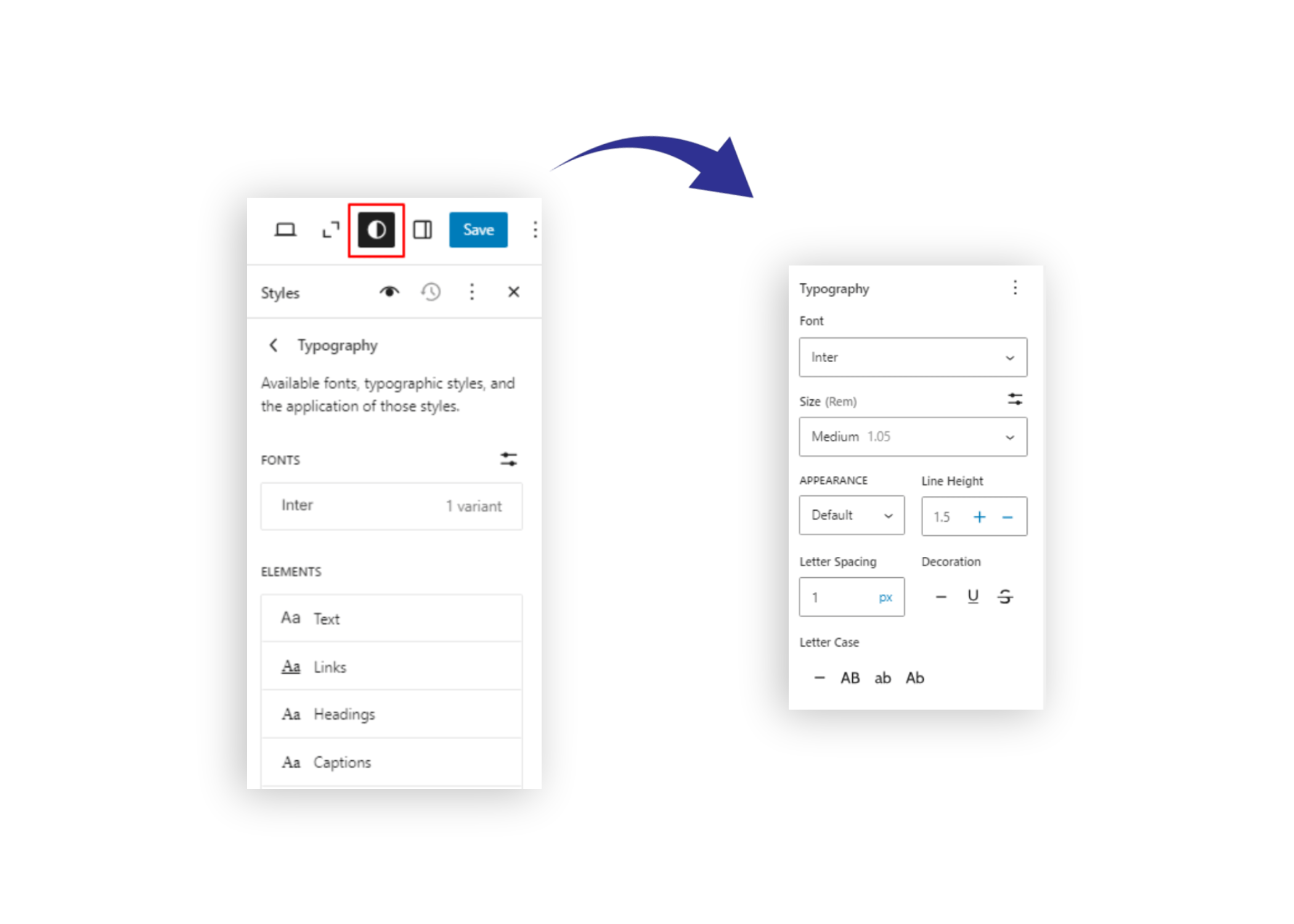 Define and manage your site’s aesthetic with ease through theme styles and global styles, providing consistent typography, color schemes, and spacing throughout the entire website.