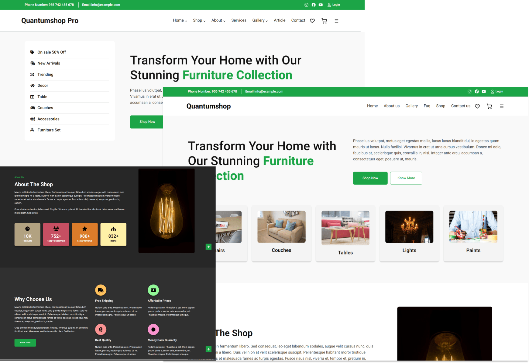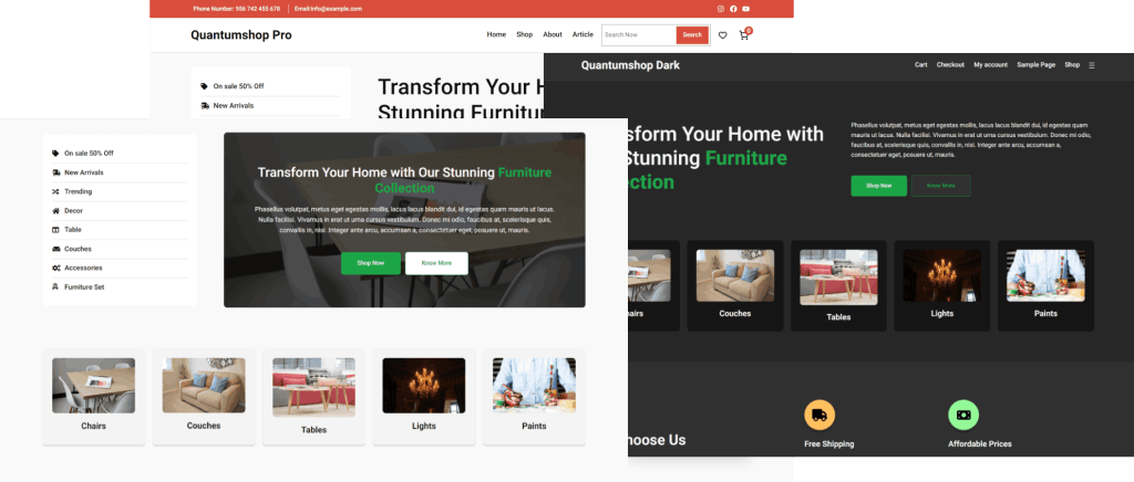 Discover the Quantumshop difference: our Free version offers a glimpse into modern design, while Pro unlocks a world of advanced features, exclusive layouts, and unparalleled customization. Elevate your WordPress journey—choose Quantumshop Pro for a digital experience that goes beyond the ordinary.
