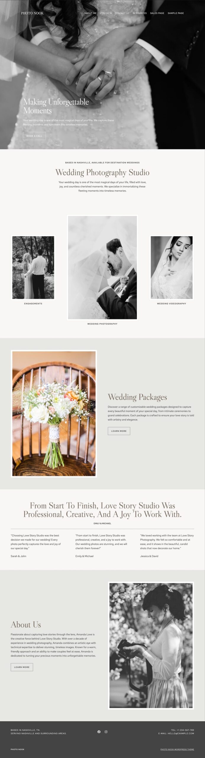 Whether you’re capturing once-in-a-lifetime wedding memories, offering engagement sessions, or building a lifestyle photography brand, Photo Nook helps you create a website that feels polished and deeply personal.