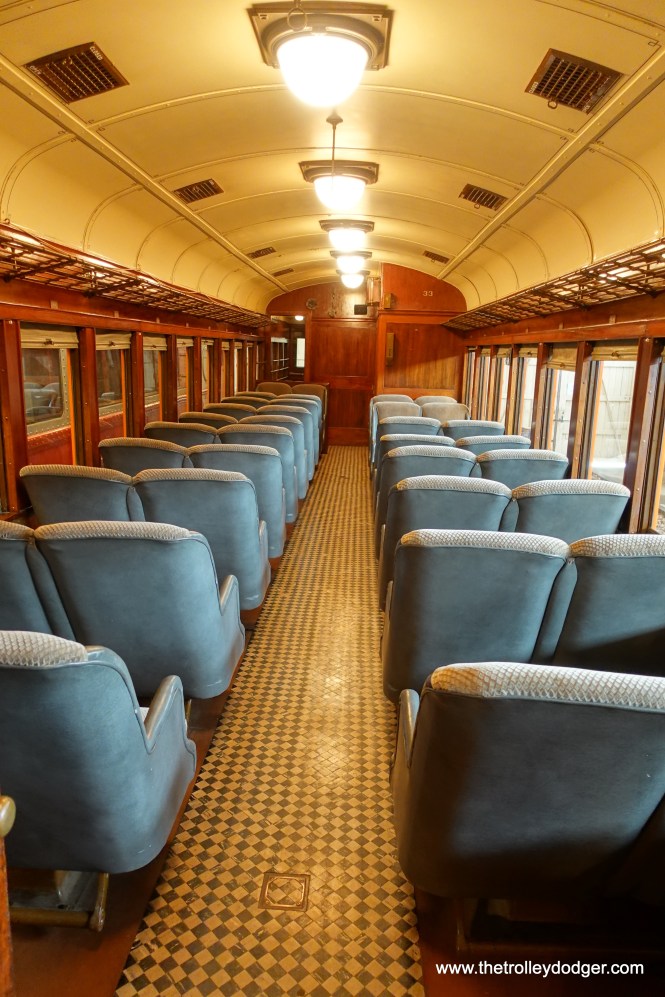 South Shore Line car 33. Don’s Rail Photos: “33 was built by Standard Car in 1929, #P-3340. It was air-conditioned and sold to National Park Service in 1983.”