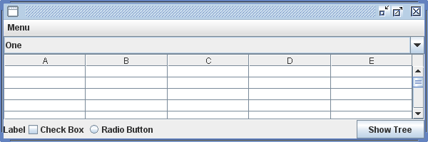 Notice that the internals of the JComboBox and JScrollPane can be examined, and that JMenuItems aren’t a part of a frame’s hierarchy but are separately shown in a JPopupMenu.