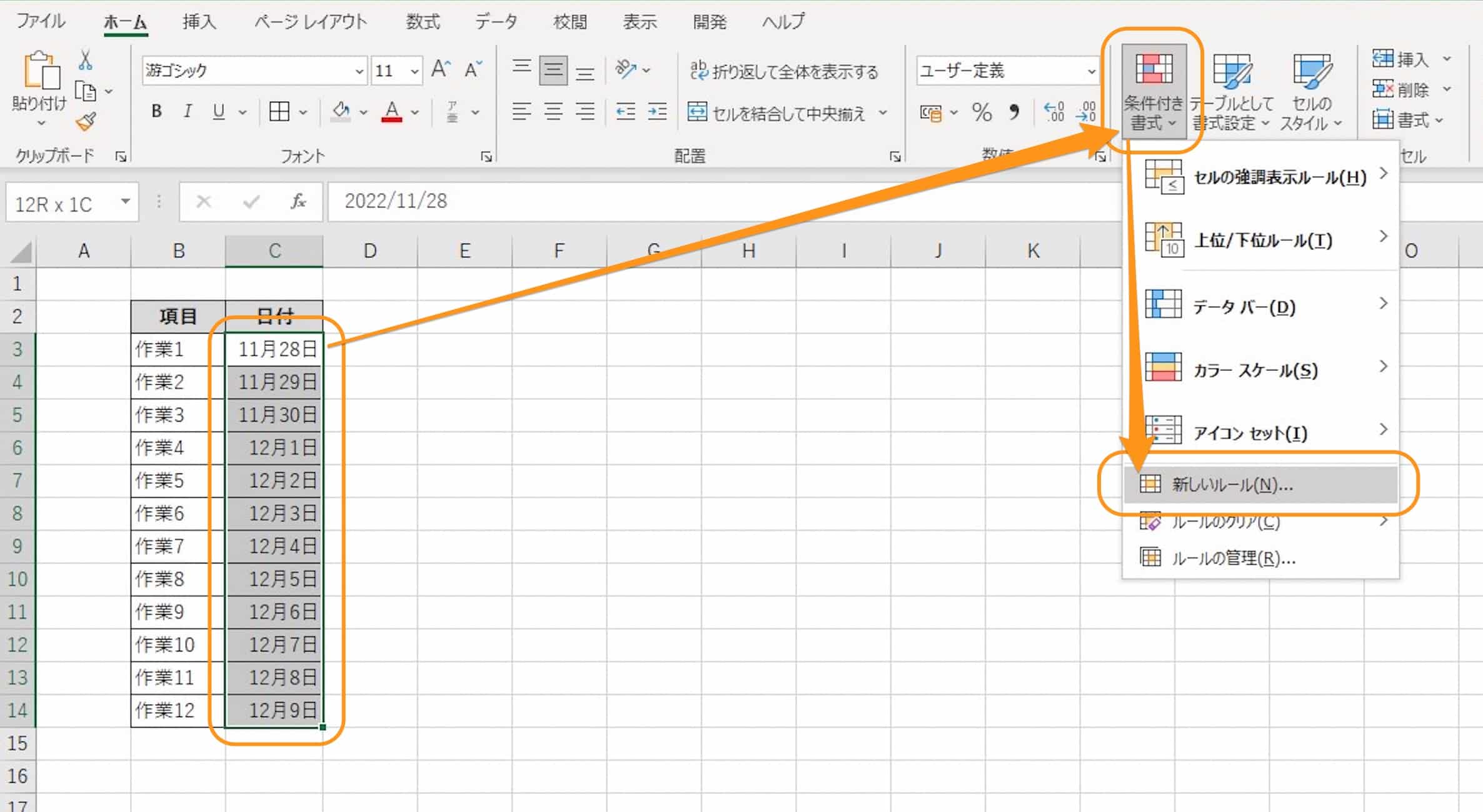 【方法②】期限切れ・期限が迫ったセルの背景色を自動的に変更する方法