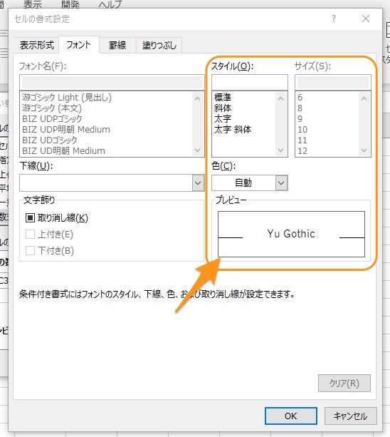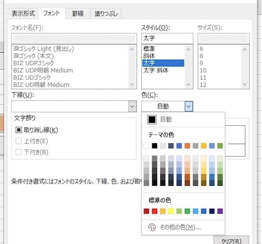 すると、見覚えのある書式設定ウィンドウが表示されます。
