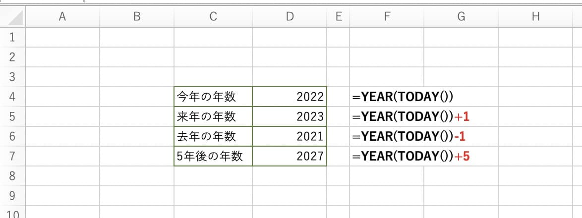 この計算式と数値データを活用して、「来年の年数」や「去年の年数」を計算することも可能です。