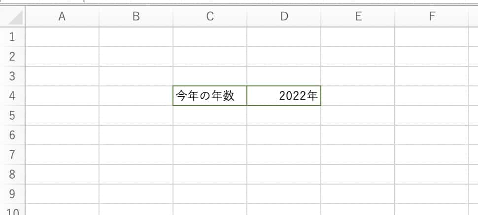 さて、今年の年数を表示する計算式は以下のとおりです。
