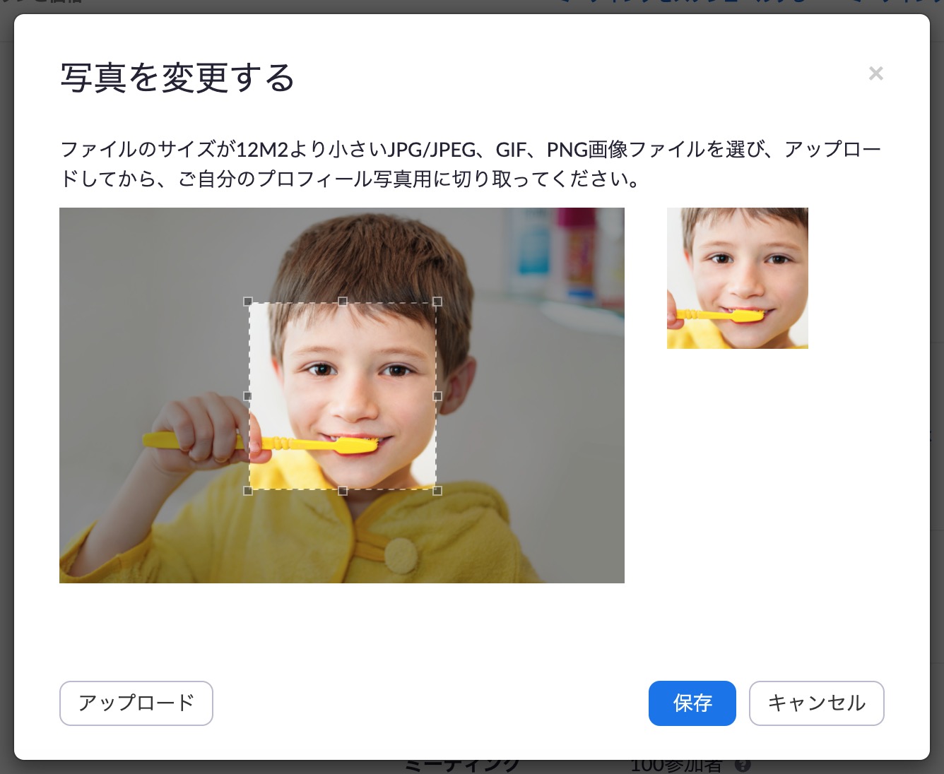 写真がアップできたら、このように表示したい場所を切り取って、「保存」へと進みましょう!