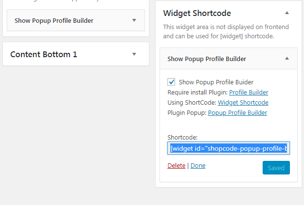 Using ShortCode from plugin : Widget Shortcode and Popup Profile Builder