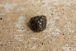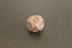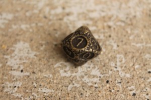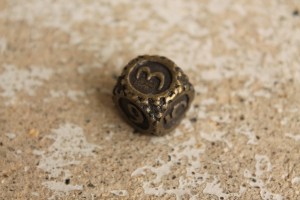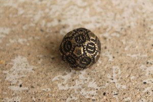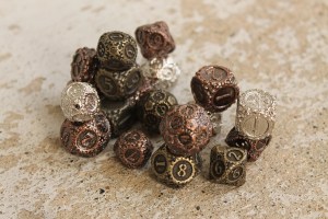 This is just an addendum to the photo set of the Gearpunk dice. We’ve ordered some in a black nickel finish, and though we don’t have all of them in stock yet thanks to a factory mistake, we have a few. May as well show some beauty photos, right?