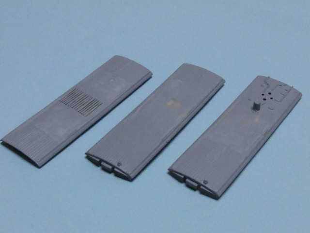 こちらは車体側は再塗装はなしで自作デカールで車番貼りとクリアー塗装、屋根上は塗り分けてルーバーもデカールで再現してウエザリング。結構面倒であります。