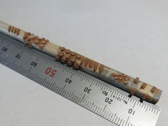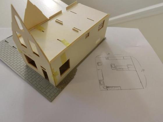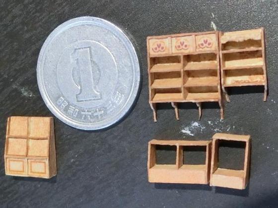 結構な手戻りでしたが一先ず茶色の家具を揃えました。近くの画材店で一番近い色の画用紙を買ってきたのですが生木色だったので少し甲板色(←海外なので手持ちの適当な色がない...)でウォッシング。余りやるとボロボロになるので難しい...