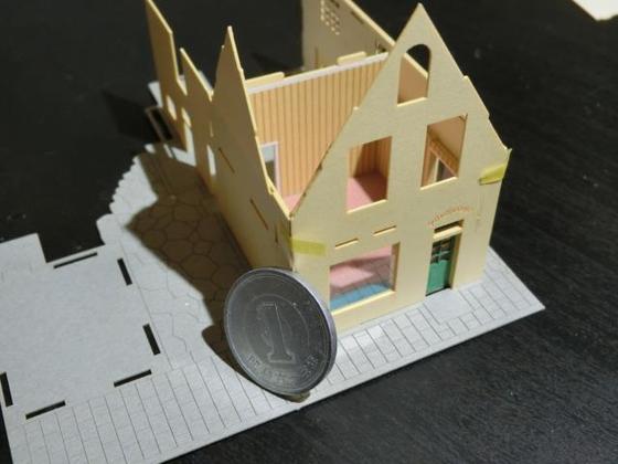 ということで三面の壁厚をアップしてみました。通常だと厚紙二枚重ねですが余白などを使って五枚重ねにしてみました。透明プラ板の厚みの扱いが一工夫必要ですが、これは外側から二枚目の厚紙に筋彫りをしてその厚み分だけ表面を剥がすという硬質紙工作でしか出来ない手法で対処。