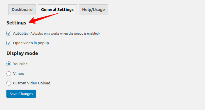 Go to the Featured Video menu > General Settings tab and choose display mode.