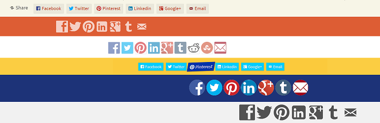 You can choose which social media sites to include from: Facebook, Twitter, Pinterest, Linkedin, Google+, Tumblr, Reddit, and StumbleUpon. A basic email function is also available.