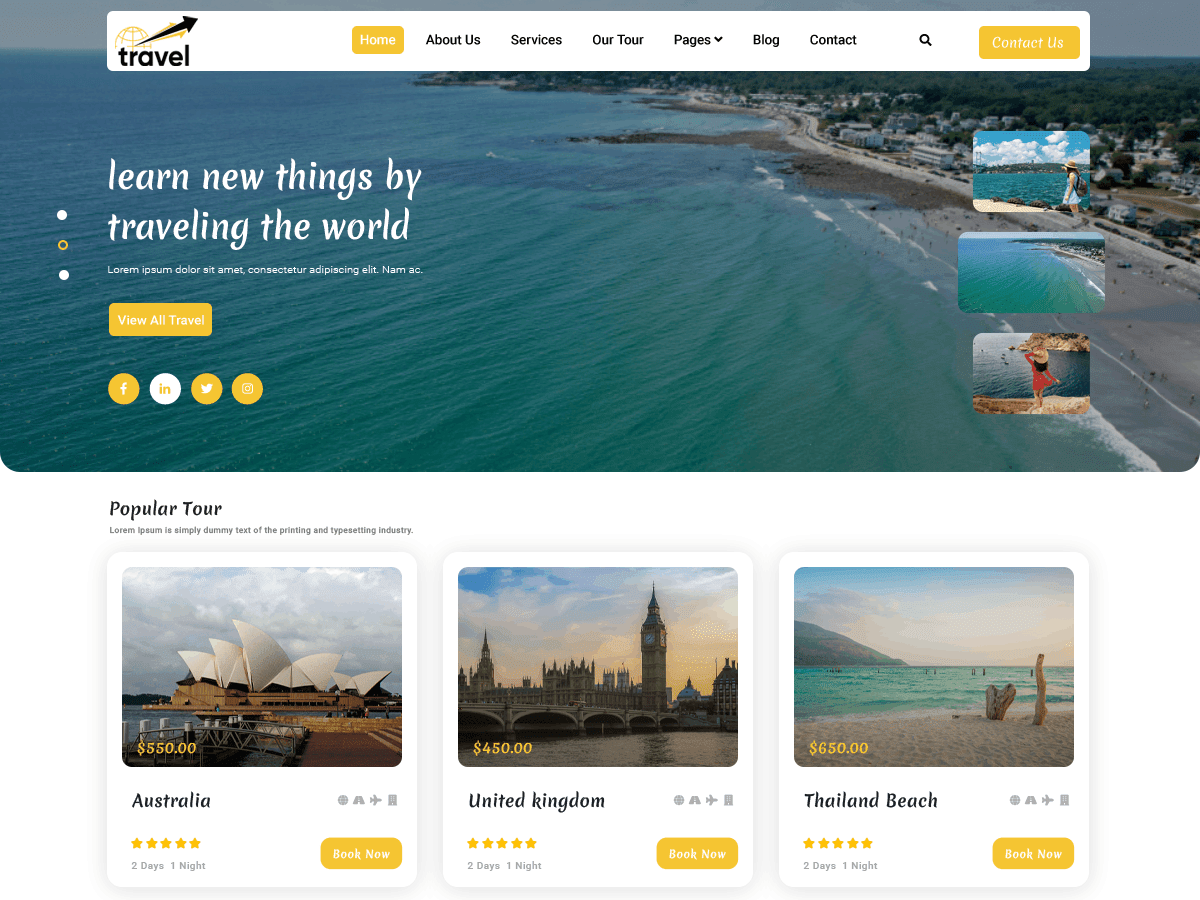 Tafri Travel Blog is a fantastic free WordPress theme that can work very well for tour operators, travel companies, travel agents, tour guides, travel destinations listing directory, travel deals, tour booking agents, adventure, journeys, destinations, culture, exploration, tips, photography, guides, experiences, wanderlust, stories, vacations, nomad, journal, blog and tour package agencies. This has a user-friendly interface that makes it easy for beginners as well as novices to create their own website without having to learn any coding skills. The responsive layout is going to make your website fit well on all the screens and bring a design that looks marvelous on small screens as well. There is a beautiful banner and stunning sections such as Blog, Team, Testimonial, etc. This theme is highly versatile and includes some beautiful Call to Action Buttons (CTA) guiding your visitors for the next course of action. With some great quality coding being done in the theme, you will find the design optimized to give a lightweight website that can load at a quick speed and deliver faster page load time. There are social media options making it possible to use several social media platforms for you and promote the business and reach out to a larger audience. It is SEO friendly a well to bring you a lot of organic traffic and more visitors. Demo: https://preview.themescaliber.com/tc-travel-blog-pro/