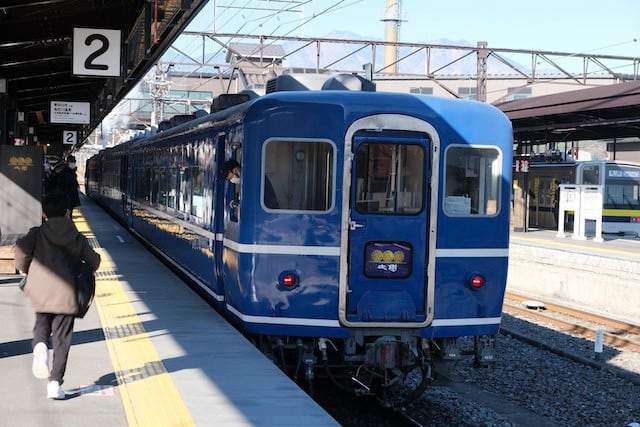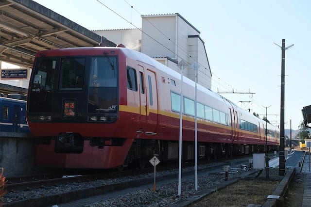 「SL大樹」のすぐ後に入線してきたJR東日本253系1000番台「きぬがわ」