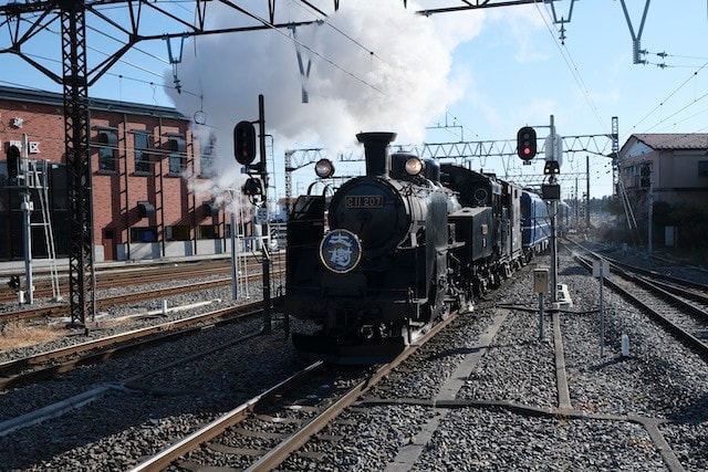 12/5の朝に浅草から「リバティけごん」で下今市までやってきまして、下今市駅で出庫してくるC11 207と、「SL大樹」の12系展望車の外観を撮影しました。