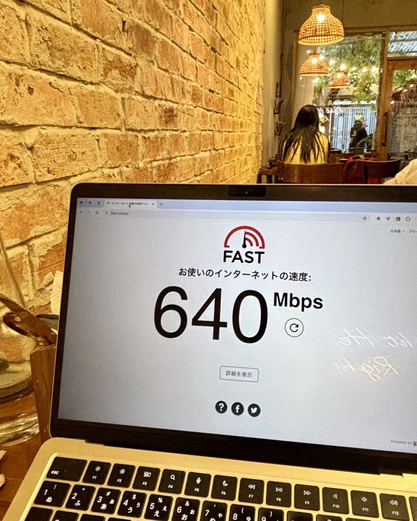 これまでいろんな国のカフェのWi-Fi使ってきましたが、一番ここが速かったかも。