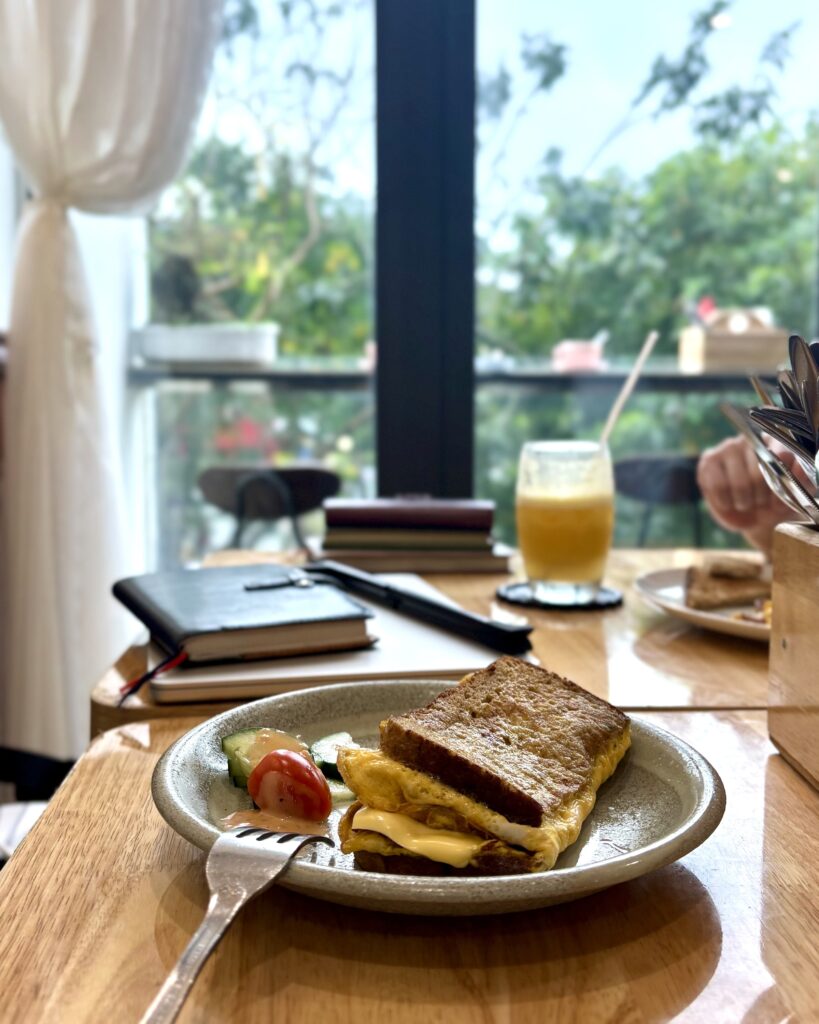 ベトナム料理ではない欧米系の朝食メニューが充実しているので、朝ごはんがてら集中して作業ができる環境です。
