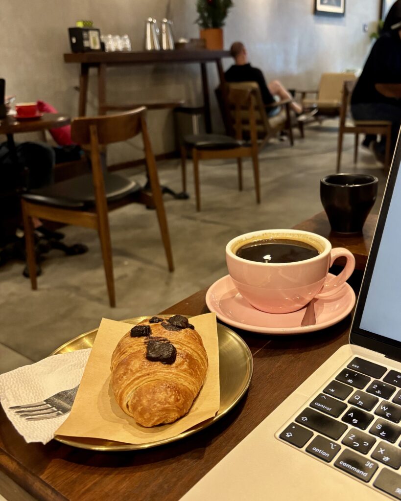 ここは本当にノマドワーカーが多くて、逆にパソコン開いてないと居心地悪く感じるかも?くらいのノマドフレンドリーです。笑(たぶん全然ふらっと休憩で入って大丈夫)