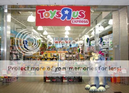 When we all got to the the mall there was some discussion on how to best carryout her plan without causing drama and mayhem when shoppers saw a large feral cat walking the aisles. She came up with the clever idea of stationing herself in front of a toy store, where shoppers would think she was part of the display. She put a bow on her hair like she’d seen in a Hello Killy display to try to blend in.