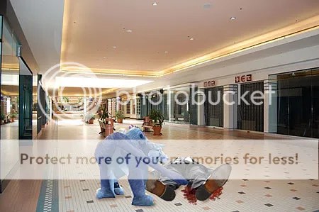 Her idea seemed to be working, so my husband and I decided it would be okay to leave her for a few minutes to get coffee. Unfortunately (for him) a thief struck a shopper coming out of an electronics store across the way. She sprang into action. I little more action than was probably called for, but hey, she’s still a noob here.